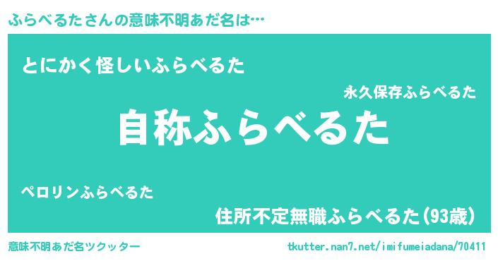 | 男性向けラノベタイトル風あだ名 | 『Re:ふらべるたから始める異世界生活』 |