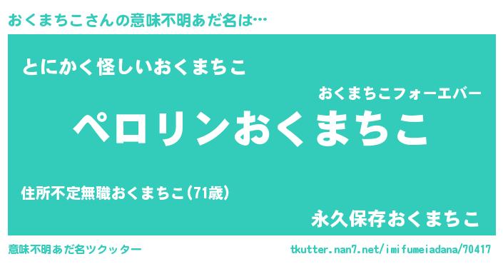 | 欧米人風あだ名 | 『マイケルおくまちこ』 |