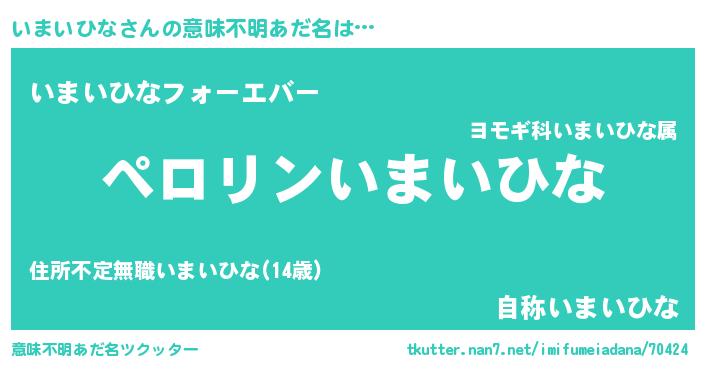 | ヒーロー風カッコイイあだ名 | 『スーパーイマイヒナ』『仮面イマダー』 |