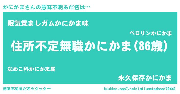 | 欧米人風あだ名 | 『アンジェラ・かにかま』 |