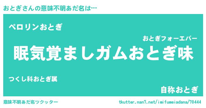 | ヒーロー風カッコイイあだ名 | 『慈愛の使者おとぎ』『スーパーオトギ』 |