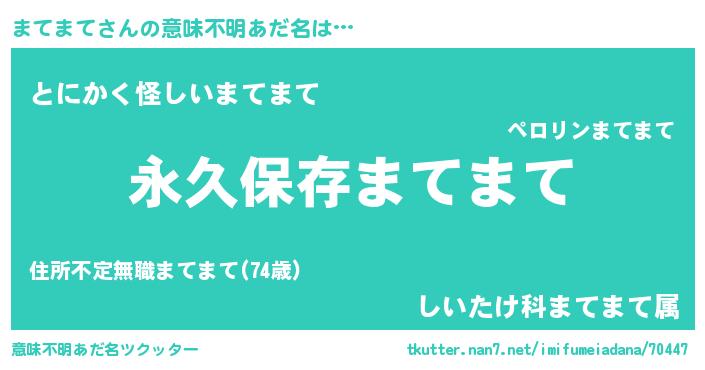 | 胡散臭い通販商品みたいなあだ名 | 『前代未聞の健康食品…その名も「まてまて」』 |