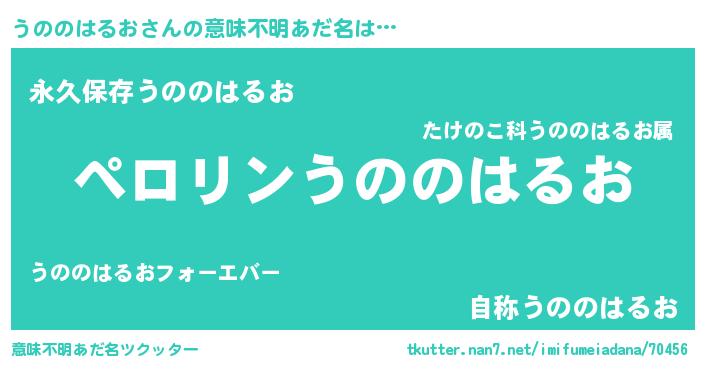 | 男性向けラノベタイトル風あだ名 | 『うののはるおの憂鬱』 |
