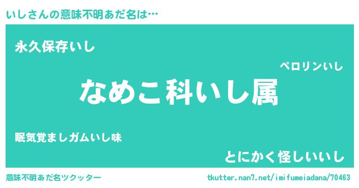 | 男性向けラノベタイトル風あだ名 | 『転生したらいしだった件』『緋弾のイシ』 |