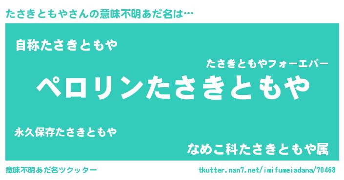 | 胡散臭い通販商品みたいなあだ名 | 『億万長者になれるブレスレット…その名も「たさきともや」』 |