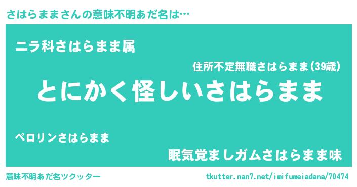 | 女子向けラノベタイトル風あだ名 | 『さはらまま様がみてる』 |