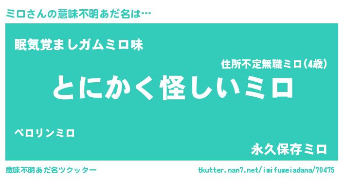 | ヒーロー風カッコイイあだ名 | 『炎刃騎士ミロ』『慈愛の使者ミロ』 |