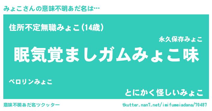 | 欧米人風あだ名 | 『ダニエルみょこ』『アンジェラ・みょこ』 |