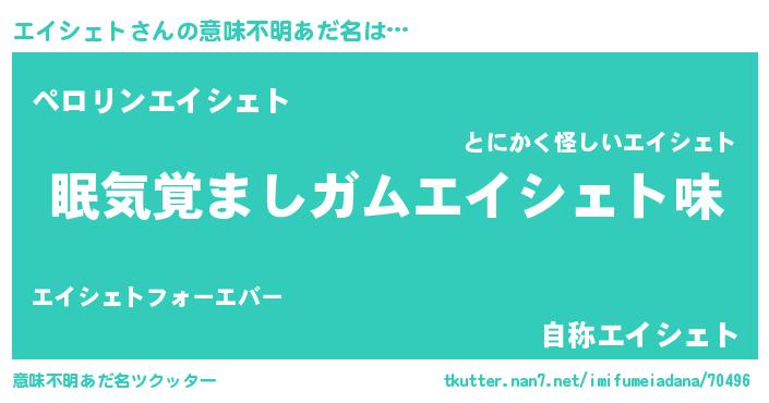 | 男性向けラノベタイトル風あだ名 | 『ノーゲーム・ノーエイシェト』 |