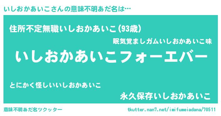 | 女子向けラノベタイトル風あだ名 | 『いしおかあいこの雑貨屋さん』 |