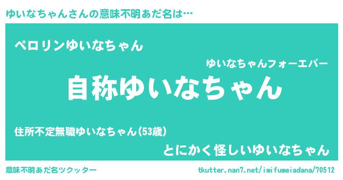 | 欧米人風あだ名 | 『ケンブリッジゆいなちゃん』 |