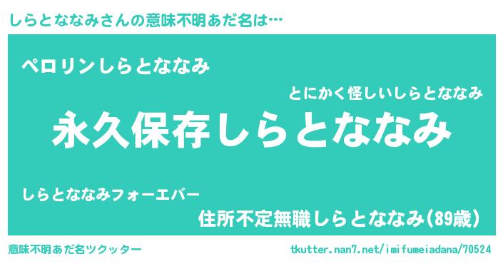 | ヘコむあだ名 | 『しらとななみ(苦笑)』『しらもー』 |