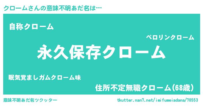 | 胡散臭い通販商品みたいなあだ名 | 『前代未聞の水素水…その名も「クローム」』 |