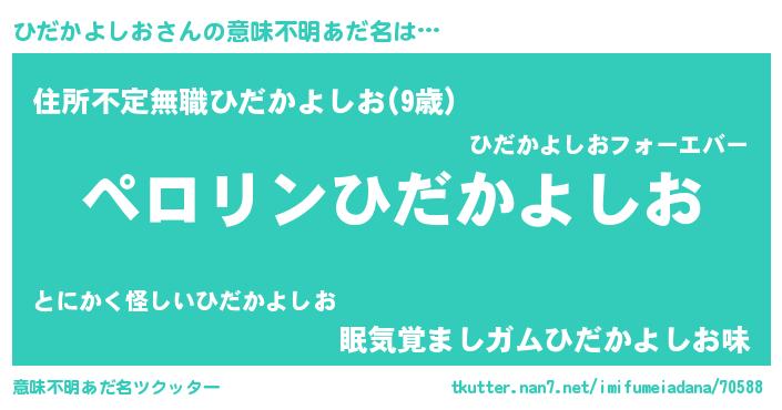 | 男性向けラノベタイトル風あだ名 | 『ひだかよしおの憂鬱』 |