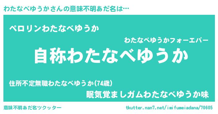 | 男性向けラノベタイトル風あだ名 | 『Re:わたなべゆうかから始める異世界生活』 |