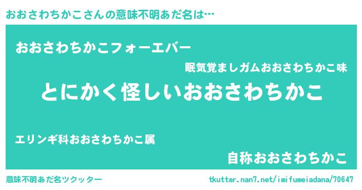 | ポケモン風あだ名 | 『ヒオオサワチカコ』『オオサダネ』 |