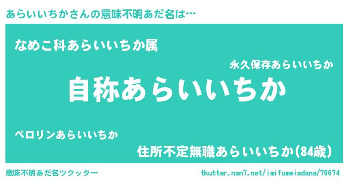 | 伝説のあだ名 | 『古より伝わる吟遊詩人あらいいちか』 |