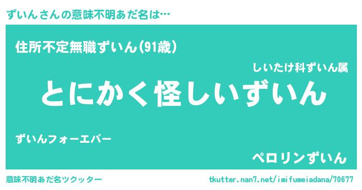 | 女子向けラノベタイトル風あだ名 | 『ずいんは平凡を望む』 |