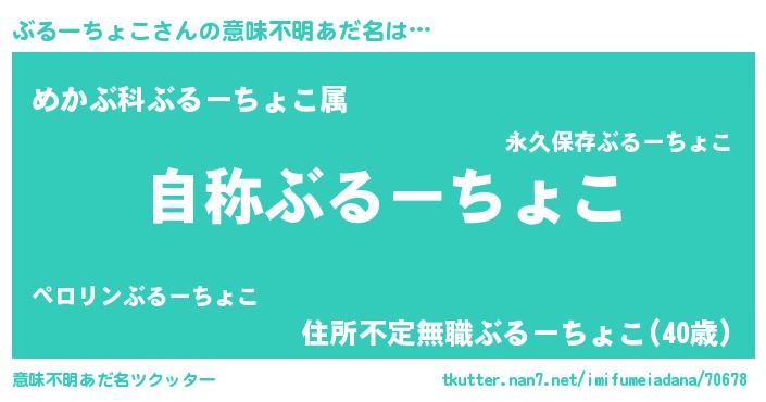 | ヘコむあだ名 | 『ぶるーちょこ(震え声)』『ぶるっふぃ~』 |