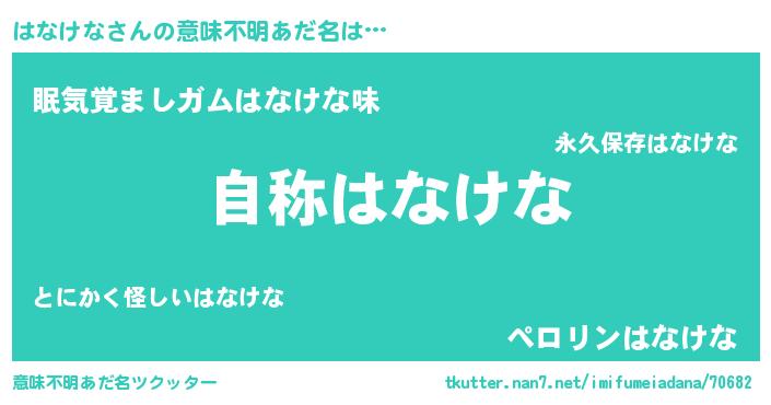 | 男性向けラノベタイトル風あだ名 | 『Re:はなけなから始める異世界生活』 |