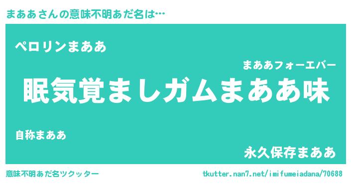 | ヘコむあだ名 | 『まあっふぃ~』『まああ(小並感)』 |