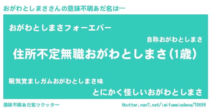 | 欧米人風あだ名 | 『おがわとしまさ・ステッグマイヤー』 |