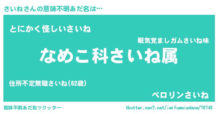 | ピコ太郎風あだ名 | 『サイ史郎』『サコ十郎』『ササ太郎』 |
