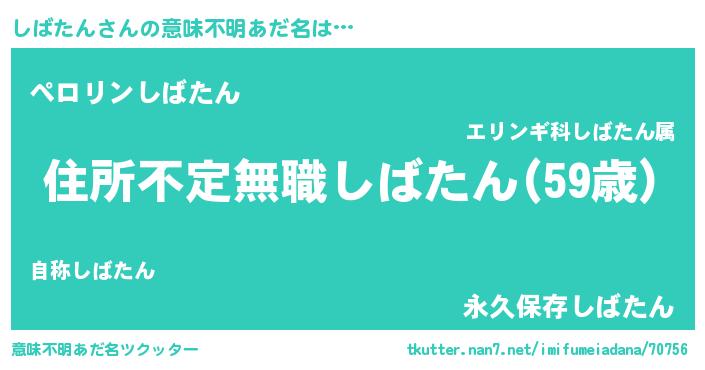 | 男性向けラノベタイトル風あだ名 | 『魔弾の王としばたん』『しばたんの憂鬱』 |