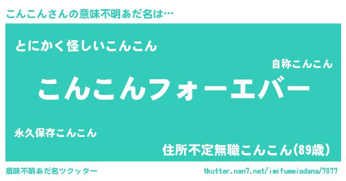 | 女子向けラノベタイトル風あだ名 | 『こんこんの婚約者』『闇のこんこん』 |