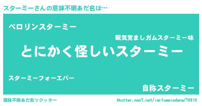| 女子向けラノベタイトル風あだ名 | 『スターミーの卵を拾いまして』 |