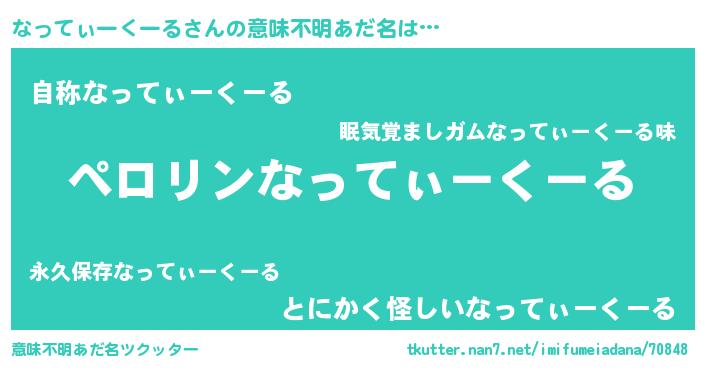 | 男性向けラノベタイトル風あだ名 | 『なってぃーくーるの憂鬱』 |