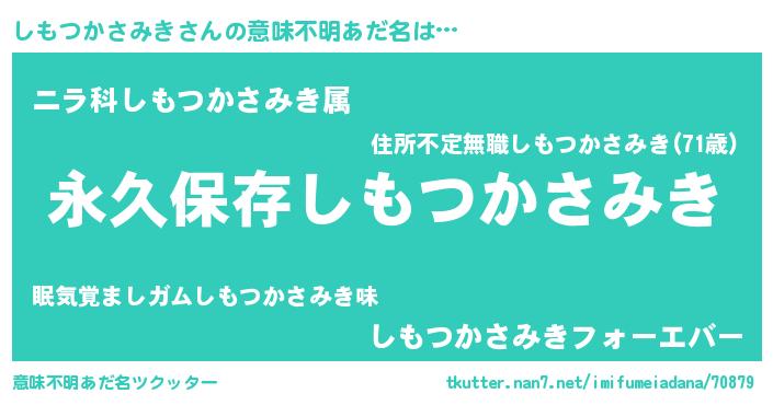 | 男性向けラノベタイトル風あだ名 | 『はたらくしもつかさみきさま!』 |