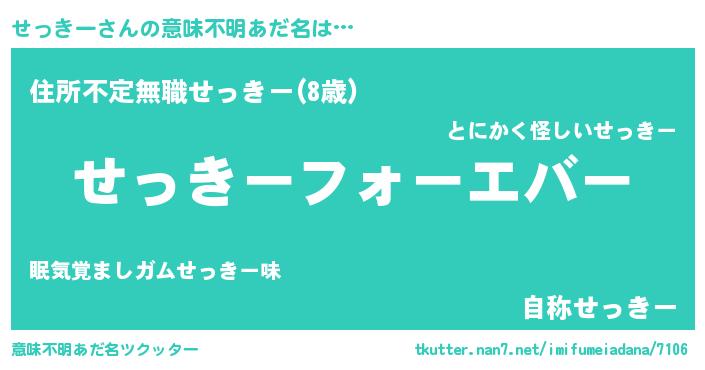 | ファンタジー風あだ名 | 『エターナルセッキーー』『ゼセットゥ』 |