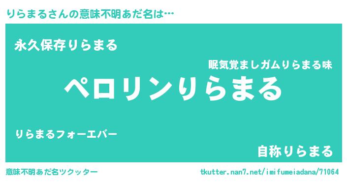 | 胡散臭い通販商品みたいなあだ名 | 『億万長者になれるブレスレット…その名も「りらまる」』 |