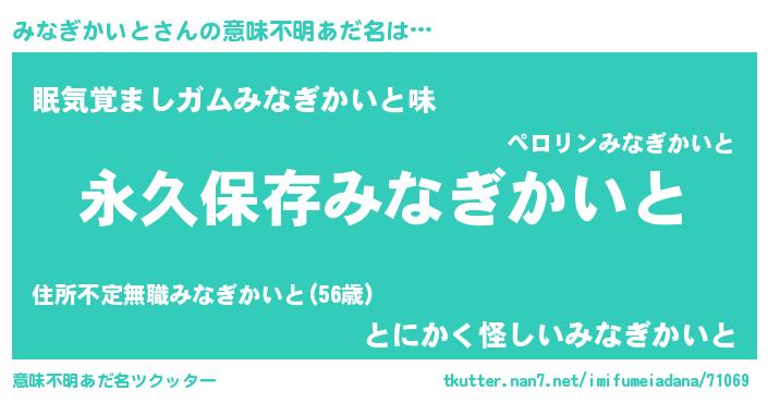 | 胡散臭い通販商品みたいなあだ名 | 『前代未聞の水素水…その名も「みなぎかいと」』 |