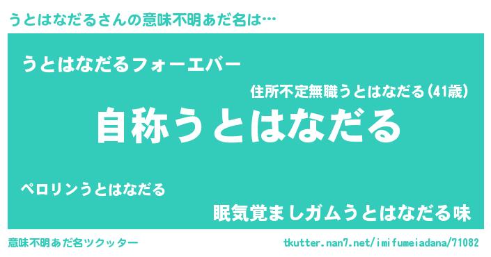 | 女子向けラノベタイトル風あだ名 | 『うとはなだるアンティーク』 |