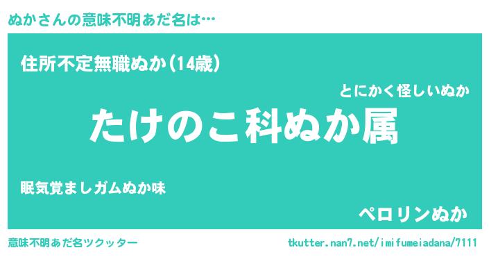 | 料理風あだ名 | 『ぬかごはん』『ぬかのカルパッチョ風』 |
