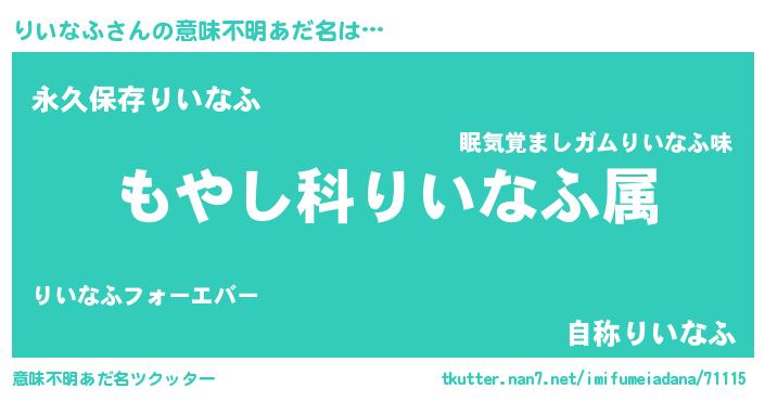 | 胡散臭い通販商品みたいなあだ名 | 『来世でも幸せになれる健康食品…その名も「りいなふ」』 |