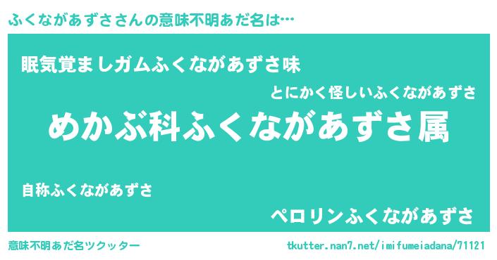 | 男性向けラノベタイトル風あだ名 | 『フクナガアズサスレイヤー』 |