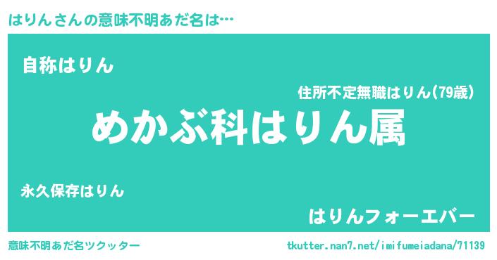 | 女子向けラノベタイトル風あだ名 | 『首の姫と首なしはりん』『闇のはりん』 |