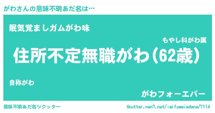 | 胡散臭い通販商品みたいなあだ名 | 『あなたにだけ特別に提供する限定10本のレアな日本酒…その名も「がわ」』 |