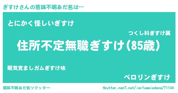 | 男性向けラノベタイトル風あだ名 | 『この素晴らしい世界にぎすけを!』 |