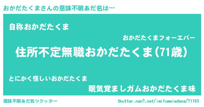 | 欧米人風あだ名 | 『アンジェラ・おかだたくま』 |