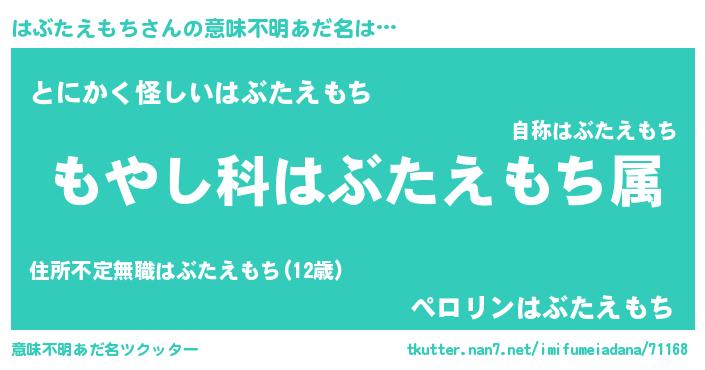 | 男性向けラノベタイトル風あだ名 | 『転生したらはぶたえもちだった件』 |