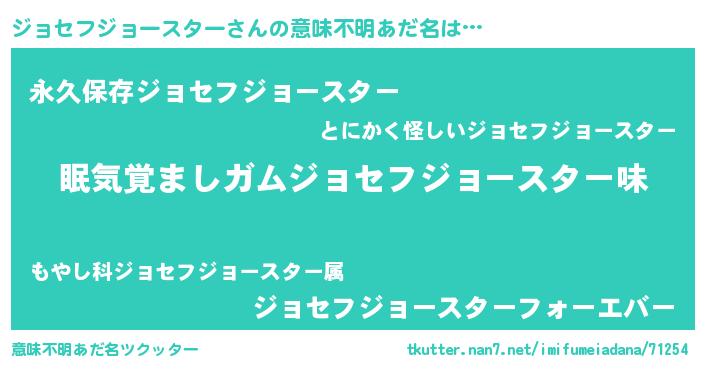 | 欧米人風あだ名 | 『ダニエルジョセフジョースター』 |