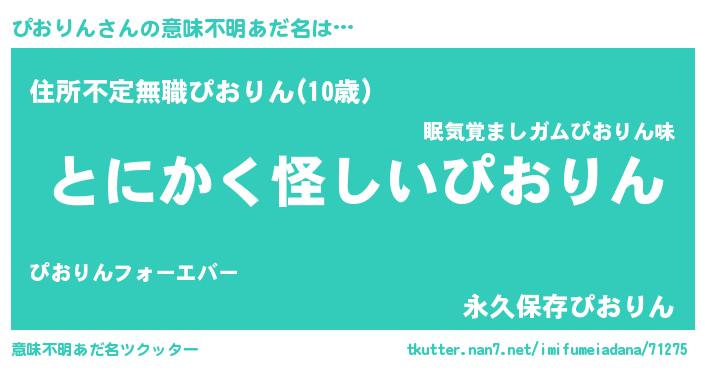 | ポケモン風あだ名 | 『ヒピオリン』『ピーオイ』 |