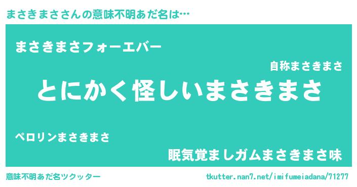 | 女子向けラノベタイトル風あだ名 | 『まさきまさは平凡を望む』 |