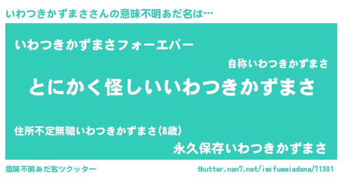| 胡散臭い通販商品みたいなあだ名 | 『信頼と実績のサプリメント…その名も「いわつきかずまさ」』 |