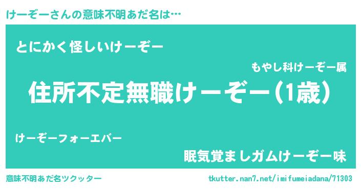 | 女子向けラノベタイトル風あだ名 | 『乙女ゲームの破滅フラグしかない悪役けーぞーに転生してしまった…』 |