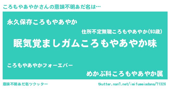 | 伝説のあだ名 | 『救世主となる占い師ころもやあやか』 |